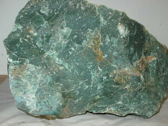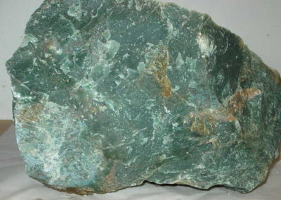 Much of the deposit retains the emerald green colouring of Fuchsite, but can also be found in lighter shades of green.