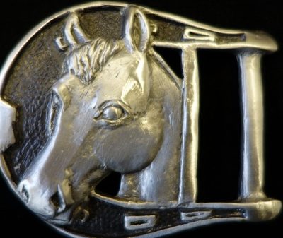 Pewter Horse Head/Horseshoe Buckle -Medium